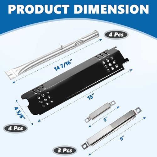 ?Material & Dimension: The cooking grates are made of heavy duty cast iron, measure 16 7/8" x 9 5/16" for Each, 16 7/8" x 27 15/16" for 3 Grates. Grill Burners: 14 7/16" x 1" , Heat Plates: 15" X 4 3/8" flame tamer g432-0096-w1.