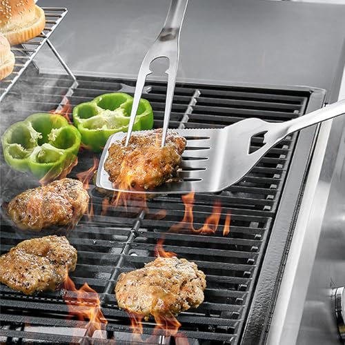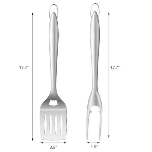 Ease and efficiency grill: You will get 2 piece Barbecue Accessories,includes metal grill spatula and fork, versatile use for help flip, piercing or lifting BBQ food a breeze.