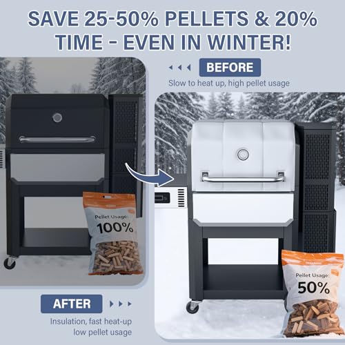 ?Steady Temperatures & Reduced Pellet Use?Acting as a thermal insulator between the smoker and cold outdoor air, the blanket maintains a warm, consistent cooking compartment—eliminating temperature fluctuations and ensuring succulent, cooked meals even in freezing conditions. Its efficient heat preservation also cuts pellet consumption by 25–50%, minimizing fuel waste to save costs while enabling longer, uninterrupted smoking sessions, making it a smart choice for users