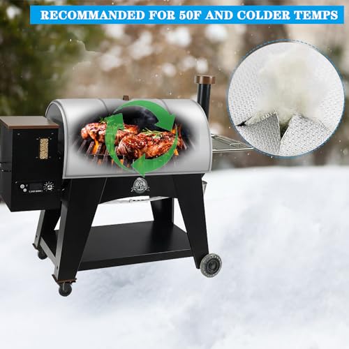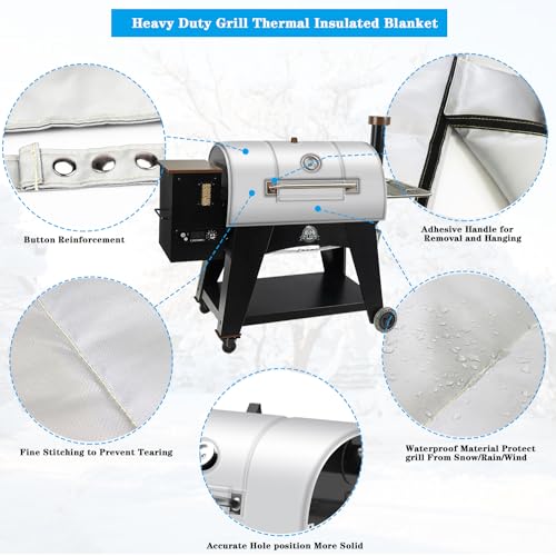 ?Material?The Thermal Insulated Blanket is made of fireproof glass fiber blanket, heat resistant, thermal insulated surface acts as a buffer between the elements and the grill, reducing the amount of fuel burned due to cold outdoor temperatures. Fuel Your Grill Wisely! This thermal insulated blanket maintains consistent heat in winter, reducing wood pellet consumption by 25%-50% during smoking and cutting cooking times by at least 20%.