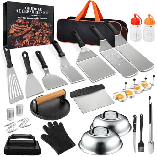 GrillChef 35PCS Griddle Accessories Kit, Grill Utensils Tools for Outdoor Camping Barbecue, Stainless Steel Spatula Set with Burger Press, Basting Cover & Glove in Carrying Bag, Grilling Gift Men