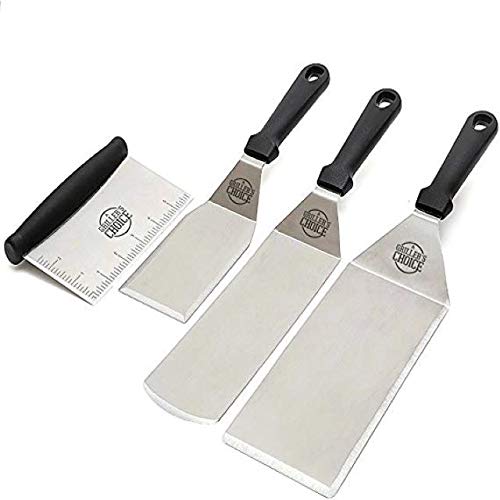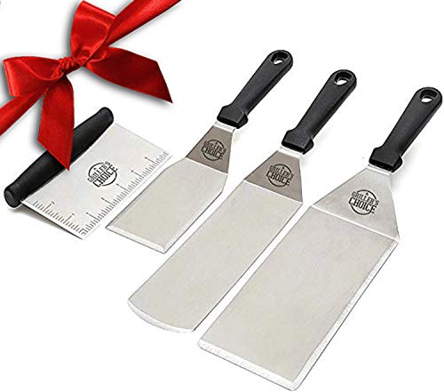 ? MULTI PURPOSE STAINLESS STEEL SPATULA SET-- An essential collection kitchen utensils to complete any cooking set. This cooking utensils set comes includes 1 cooking spatula turner, 1 grill spatula, 1 turner 4 x 8 inch and1 x griddle scraper . Great for use as pancake turner, fish turner, egg turner, pancake spatula