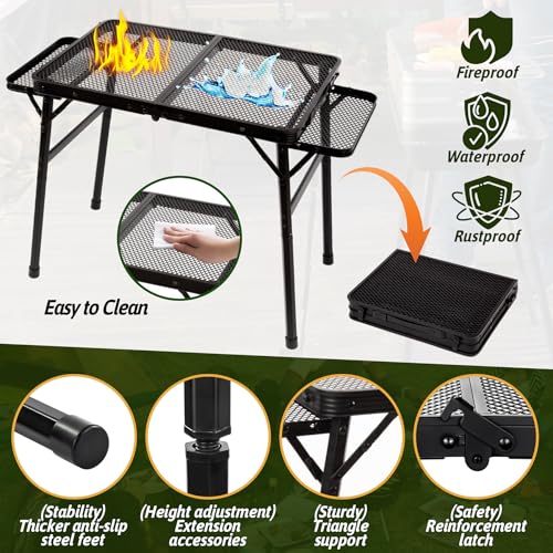 Easy to Use: Our outdoor folding table can be easily installed and folded without any tools, easy to clean, the surface is also with anti-rust powder coating layer, the edges of the steel mesh are also polished, smooth and will not be sharp to the hand, with a certain degree of safety
