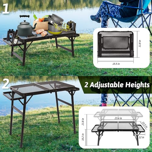 Multi-functional: Our portable grill table can be adjusted in height, foldable, reversible, from 11-25 inches arbitrarily adjusted to a comfortable height, out of the way can also be folded into a handbag, easy to carry, 2 side of the folding wings do not need to be used can also be folded and flipped to put away, to meet a variety of needs for use in any occasion