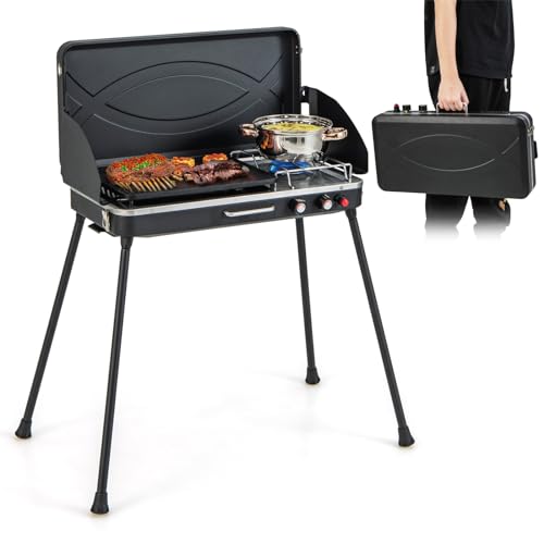 Multifunctional 2-in-1 Design: The 2-in-1 camping grill provides you 2 convenient using methods, one is to freely stand with four legs and the other is to remove the legs and place them on the table. This allows for easy setup and makes outdoor cooking fun and so much easier.