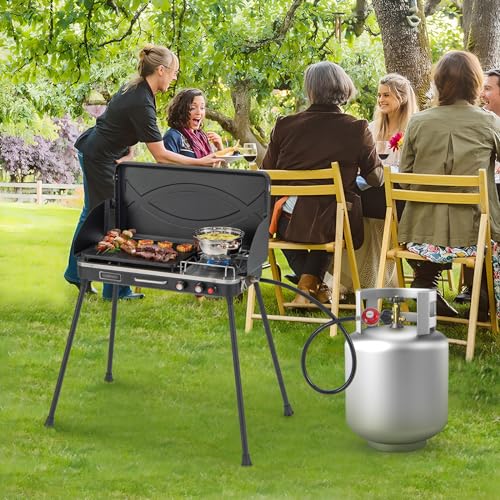 Versatile Uses: The outdoor gas grill is designed for stable and efficient use, perfect for preparing steaks, burgers, sausage, pancakes, soup, boiled water, etc. It is an ideal stove for BBQ grilling, gathering parties, or camping trips to enjoy a happy time with your family and friends.