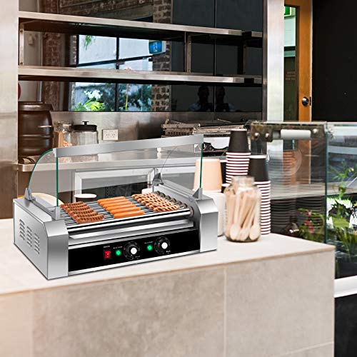 Large Capacity - Total 18 hotdogs per batch, all 7 premium Grade and Non-Stick stainless steel rollers rotate 360 degrees, heated evenly.