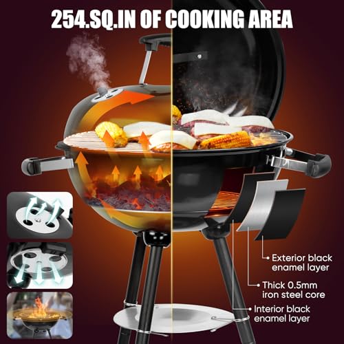 HaSteeL 18 Inch Charcoal Grill, 2-In-1 Kettle Outdoor Barbecue Grill, Portable Black BBQ Grill for Camping/Backyard/Patio/Picnic, Porcelain-Enameled Lid & Fire Bowl, 254.SQ.IN Cooking Area, 29Pcs