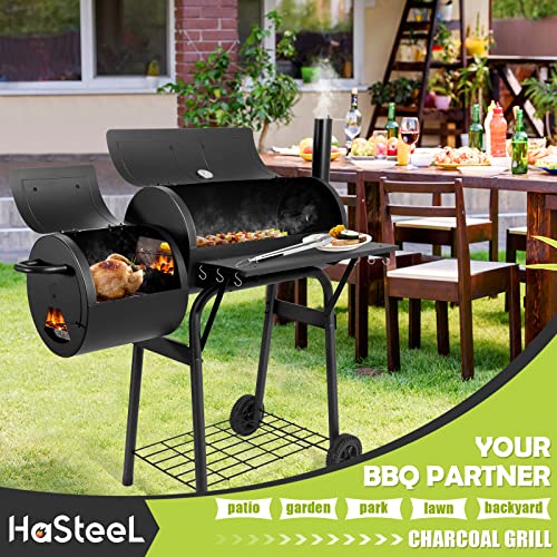 Heavy Duty & Rugged Structure: HaSteeL whole charcoal grill is made of premium iron steel with 1.2mm thick grill lids and 1mm thick grill bowls, Surface finish is spraying high temperature powder, Easily handle 400? without deformation or coating peeling off, Anti-rust hinges are easy to open and close lid, U-shaped supporting legs further enhance stability with strong screws, Very solid frame and no wobbling