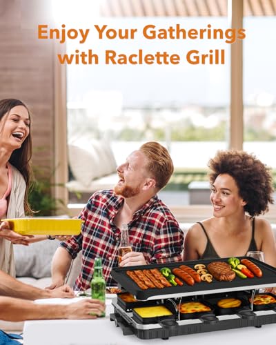 8 Independent Raclette Pans: Equipped with 8 individual warming trays, this raclette grill makes it easy to melt cheese, warm sauces, heat condiments, or keep cooked food at the perfect temperature. Perfect for gatherings of up to 8 people, it creates a fun and interactive dining experience where everyone can customize their own delicious flavor combinations.