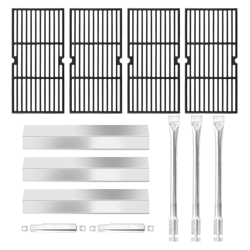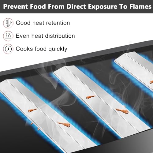 ? Quality Materials: Cooking Grates made of Solid Cast Iron, Heat Plate and burner tube made of Stainless steel, heat and corrosion resistant, rust resistant and durable; Grill grates have excellent heat retention, allowing for even cooking and beautiful grill marks, Heat Plate protects food from direct exposure to flames and lasts longer than similar products, Burner Tube's dense pores heat food more evenly