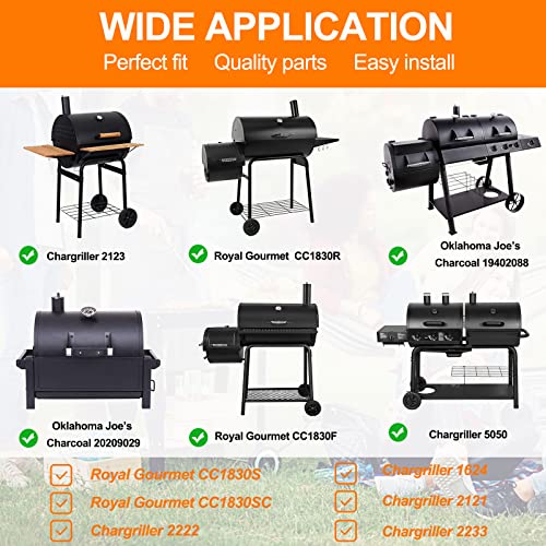 ?Perfect Fits? The extend ash pan fits for Chargriller 5050 5072 5650 E1224 1224 1324 2121 2222 2727 2828 2929 2123 3001 3030 3725 4000 5252 9020 2823 2233 2223 charcoal grills; Fits for Charbroil 17302056 grill; Fits for Royal Gourmet Charcoal Grills CC1830F CC1830R CC1830SC CC1830FB grill; Fits for Oklahoma Joe’s Charcoal 19402088 20209029 grill.