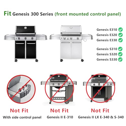 Fits Weber Genesis E-310 (2011-2016), Genesis E-320 (2011-2016), Genesis E-330 (2011-2016), Genesis EP-310 (2011-2016), Genesis EP-320 (2011-2016), Genesis EP-330 (2011-2016), Genesis S-310 (2011-2016), Genesis S-330 (2011-2016) Gas Grills