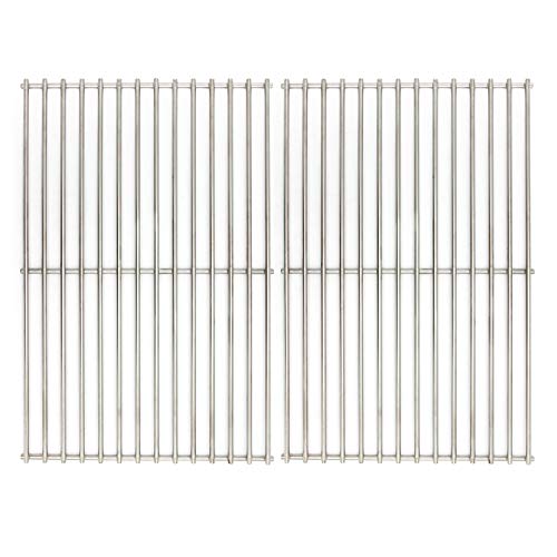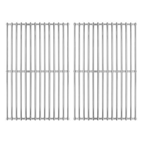 ?DURABLE?Made of stainless steel, much longer life than porcelain grill grates. ?SAFETY?The end of the rods with a round design that don't hurt your hands. ?NON-STICK?Before you cook on them, take some high temperature oil such as Peanut or Grape Seed, soak a paper towel and rub oil on the grills, and let the oil burn off first. The food does not stick to the grills.