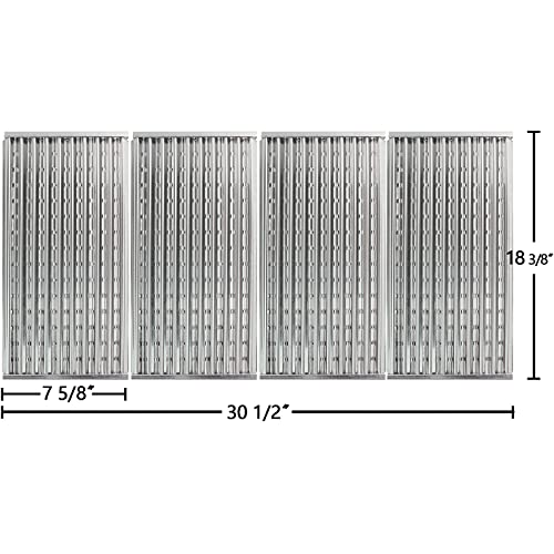 Cast Iron Grill Grates Dimension: 18 1/4 x 7 1/8" Each grate, 18 1/4 X 28 3/4" Total, 4pcs grates; Stamped Stainless Steel Emitter Grates Dimensions: 18 3/8" x 7 5/8" Each, 18 3/8" x 30 1/2" Total; Set of 4; Cooking grates bottom perforated piece.