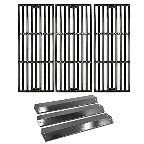 Hongso Repair Kit Porcelain Coated Cast Iron Grill Grates and Porcelain Steel Heat Plates Replacement for Char Griller Models 5050 3001 5650 5072 3030 4208 4000 3008, King Griller 3008 5252 Gas Grills