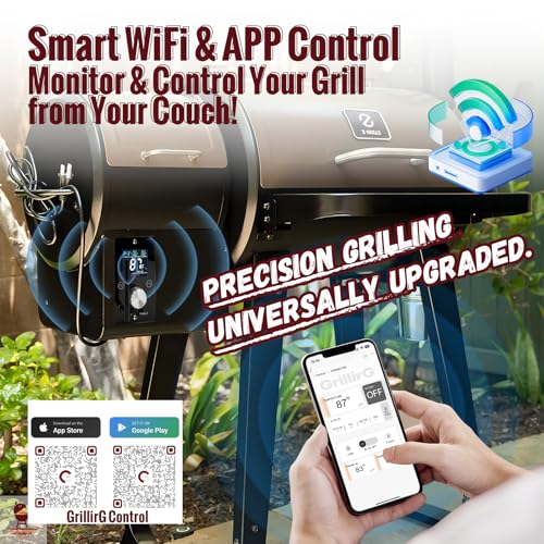 Smart WiFi & App Control: Remotely monitor and control your grill's temperature and smoke settings in real-time from your smartphone. Receive alerts when your food is perfectly cooked or if attention is needed, no need to babysit the grill.