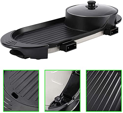 HYDDNice 2 in 1 Electric Grill with Hot Pot, 1000W Multifunctional Electric Barbecue and Hot Pot, Separate Temperature BBQ Hot Pot
