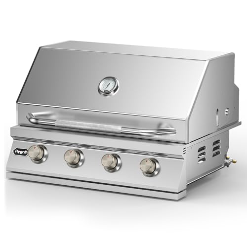 Hygrill 32-Inch Built In Grill, Stainless Steel 4-Burner Grill Head for Outdoor Kitchen, Natural Gas
