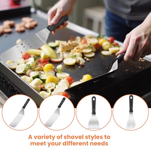 High quality stainless steel: Griddle tools are made of high quality stainless steel, which is rust proof and corrosion-resistant, heat resistant and durable, you will love to use them for kitchen cooking and outdoor kitchens