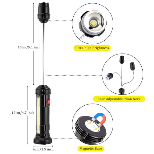 360-DEGREE FLEXIBLE GOOSE NECK & SWIVEL HEAD: It is equipped with a 5 inch and 360 degrees gooseneck that makes it possible to adjust the light to any position. That is to say, it can help you adjust the direction of illumination. The focus and the range of swivel head light can also be adjusted to deal with different purposes of use.