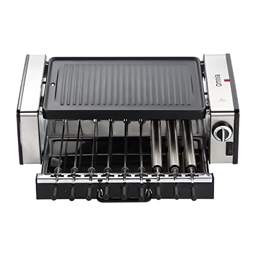 2-in-1 Kebab Grill – Top grill plate can be used to grill meat, vegetables, and seafood. While the bottom is for grilling kebabs/skewers and rollers for cooking hotdogs or sausages.