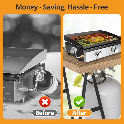 Broad Device Compatibility: Supports a wide range of propane tanks from 5 lb to 40 lb while connecting 1 lb devices—compatible with Weber grills, Coleman stoves, Blackstone griddles, Buddy heaters, and more.