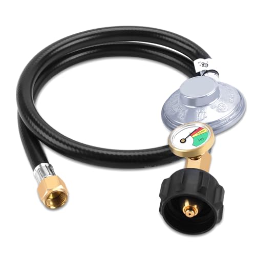 3ft propane regulator hose with propane tank pressure gauge for connecting the propane unit to a 5-40 lb gas tank The propane tank level gauge can detect dangerous leaks and read the oil level at a glance