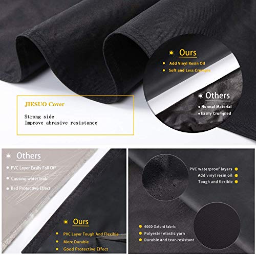 Heavy duty Material - JIESUO pit boss grill cover is made of heavy duty 600D polyester elastic yarn, durable and tear-resistance. The PVC lining waterproof layer using an upgraded formula, adding a specific proportion of vinyl oil, making the waterproof layer soft and less crumple, more durable than other similar products.
