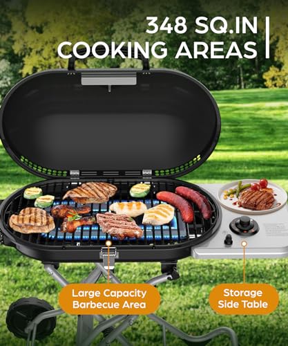 [ Large Cooking Areas ] With a 348 square inches cooking area fits up to 15 burgers or 20 sausages. It is the perfect size for BBQ parties or everyday family BBQs. Heavy-duty cast iron grate mesh is not easy to rust, peel off, or bend, but also can make beautiful sear marks on the steak. Gas grill is also non-stick and easy to clean.