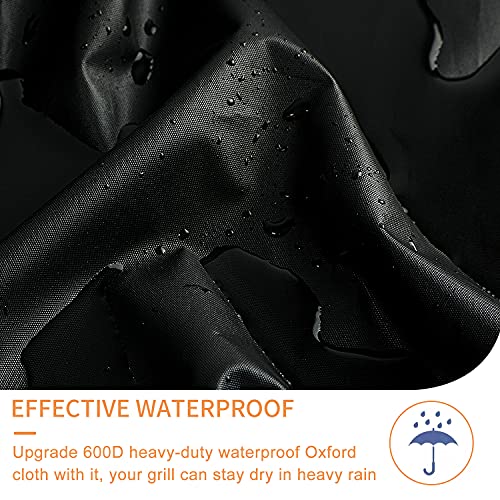 Environmental resistance - Premium heavy duty polyester fabric with waterproof and UV protection to help protect your grill from the elements against. There are large Velcro straps that hold the cover in place and will not be blown away by the wind.
