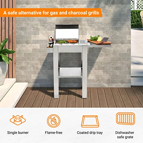 Even Heat Distribution: Due to direct contact between the element and the cooking grate, no hot or cold zones exist and the surface heats up evenly. The non-stick grate is dishwasher safe and our grill with stand holds a 3-year manufacturer warranty.