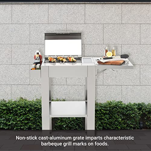 Stainless Steel: Made with Marine-grade 304 stainless steel, the Frontier Grill with stand is weather resistant and rust-proof for life. The grill features a single burner, and a foldable shelf along with a side rack for storing seasonings, drinks, etc.
