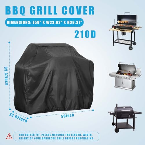 Cover Size: Fits Decks up to 58 inches, 58 x 24 x 46 inch (L x W x H). Fits grill for Weber Char-Broil Monument, Dyna-glo Nexgrill and so on.