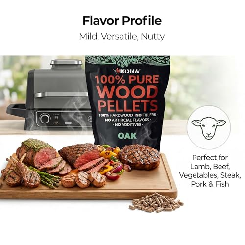 PREMIUM HARDWOODS - Kona premium bbq wood pellets guarantee a high BTU, are clean-burning, low-ash, and low-moisture. Guaranteed great flavor every time. Intended to be compatible with the Ninja Woodfire outdoor grill, our Kona 100% real hardwood pellets are only used to create authentic woodfire smoke flavor—not for fuel.