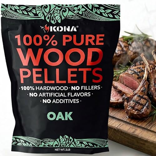 Kona 100% Oak Smoker Pellets, Intended for Ninja Woodfire Outdoor Grill, 2 lb Resealable Bag
