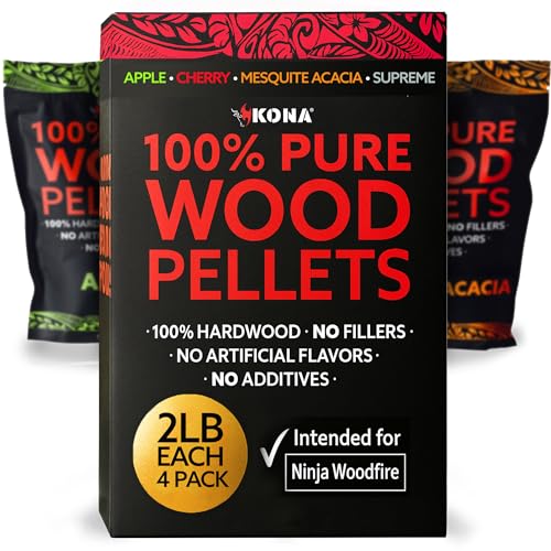 AMAZING WOOD FIRED FLAVOR - Kona best BBQ smoking pellets variety pack provides an outstanding variety of flavors for an entire grilling season (80 uses). Only 1/3 to 1/2 cup is needed per use. Compatible with Ninja Woodfire outdoor grill.