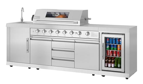KoolMore KM-OKS-BQHUB Reserve Outdoor Kitchen Island with 6 Grill and a Side Burner, Sink, Storage Cabinet and Beverage Refrigerator, CSA Listed in Stainless-Steel, Stainless Steel