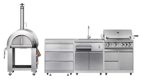 KoolMore Outdoor Kitchen Series Modular Kitchen with a Wood fire Pizza Oven, 3 Drawer Cabinet, Sink, 30 in. BBQ Grill and Cabinet in Stainless-Steel (KM-OKSKIT-CONFIG102)