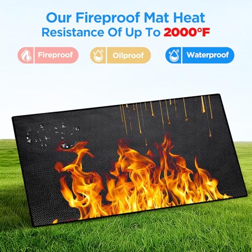 Double-Sided Fireproof, Waterproof, Oil-Proof?We use more advanced fireproof materials for our grill mats. Made of fiberglass, they offer heat resistance up to 2000 degrees Fahrenheit. Enhanced with a thickened silicone coating on both sides, they provide triple-layered protection against fire, water, and oil