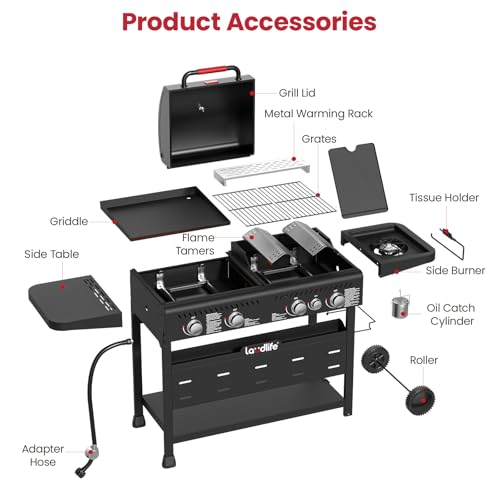 [Griddle Grill Combo with Side Burner – More Recipes, More Freedom] Switch between flat-top griddling and gas grilling on one station, and cooking soup with side burner. Perfect for backyard BBQs, you can sear steaks, fry eggs, or cook sides — all in one go, with no flavor compromises.