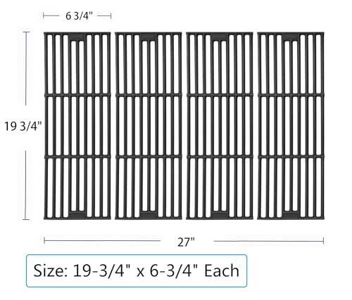Dimensions: 19-3/4" x 6-3/4" each, 19-3/4" x 27" for 4 units. Please double check your grill model and dimensions of your current grill grates before you order to ensure that you’re choosing the most appropriate part for your grill