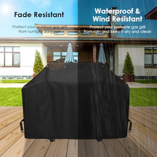 Fade Resistant & Waterproof Materia: The Gas Grill Cover is made of special fade-resistant fabric, heavy-duty polyester, and waterproof polyvinyl coating inside, exhibiting superior colorfastness. The grill cover effectively covers your grill and protects it against mother nature's harsh stressors.