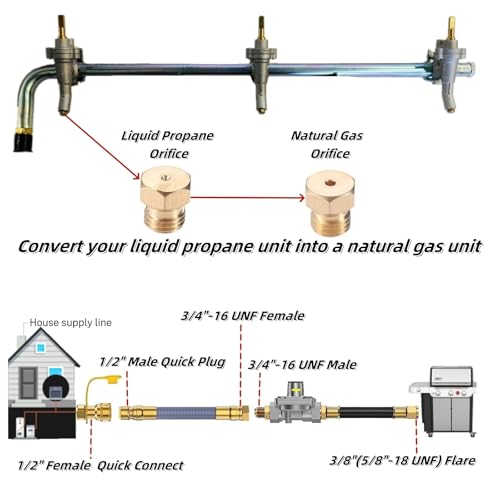 The propane/natural gas valve conversion DIY kit includes 10"W.C. LP propane regulator valve to a 4" W.C. natural gas valve Interchange dual functions and own 5.9" propane hose. brass M6x0.75 mm jet nozzle: 5 pcs x 2.0mm orifice,2 pcs x1.39mm orifice, 5 pcs x 0.5mm orifice .Usually 10” W.C. regulator valve with 0.5mm orifice nozzle used from Natural Gas to Propane,4" W.C. natural gas valve with 2.0mm orifice used from Propane to Natural Gas.