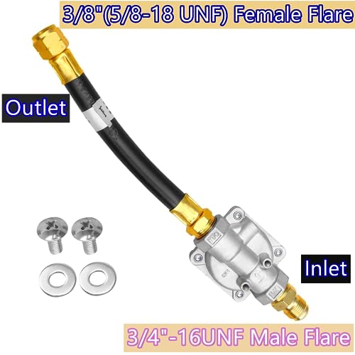 5.9 in Natural Gas & LP propane regulator hose adapter, inlet adapter is 3/4"1-6 UNF male flare fitting, outlet adapter is 3/8" (5/8"-18 UNF) fitting, and 1/2 PSI gas valve can be used in two ways. The gas-type valve can be determined by adjusting the position of the valve axis. It can be set as a propane valve. It can also be set as a natural gas valve. Set up according to your needs. outlet adapter to connect the gas stove. grill, pizza to intake channel