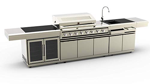 304 Stainless Steel, High Quality Black Marble Top, 8 Zone BBQ Grill, Rotisserie, DOUBLE Wine Cooler/Refrigerator and Modular Sink Section. Large Full Size Protective Canvas Cover Included Free! *While Supplies Last
