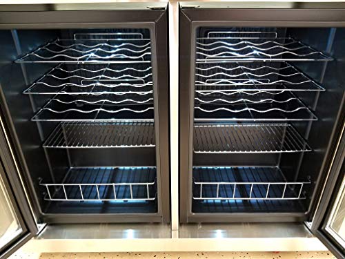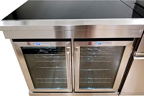 Refrigerator/Wine Cooler Section: 53.5" W (with Side Table) or 37.5" Wide x 25" Deep x 35.5" Tall (Double Wine Cooler / Refrigerator 65L Size x 2, holds ~50+ 750ml Wine Bottles). Sink Section: 49.25" W (with Side Table) or 33.5" W (without Side Table) x 28" D x 35.5" Countertop H or 52" H to top of faucet. Ships LTL Freight with curbside delivery via lift gate or dock unload.