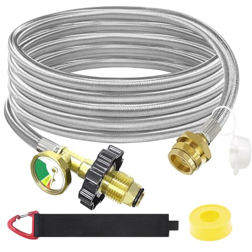 ?Versatile & Easy to Use?15FT POL Stainless Braided Propane Adapter Hose with Gauge easily connects to small appliances. Widely used in outdoor propane appliances like buddy heaters, Coleman camping stoves, burners, fryers, tabletop grills, and more 1lb portable appliances.