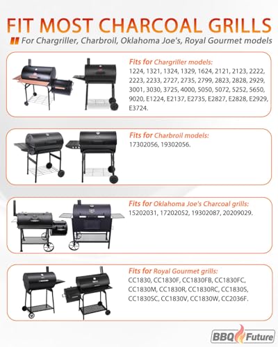 Adjustable ash pan for Chargriller grill E1224, 1224, 1324, 2121, 2222, 2727, 2828 and 2929 Charcoal Grill ; Also fits Gourmet Charcoal Grill CC1830 series: CC1830F CC1830FB CC1830R CC1830S CC1830SC CC2036F. Fit Charbroil Oklahoma Joe Charcoal Grill 19302087, 17202052, 15202031