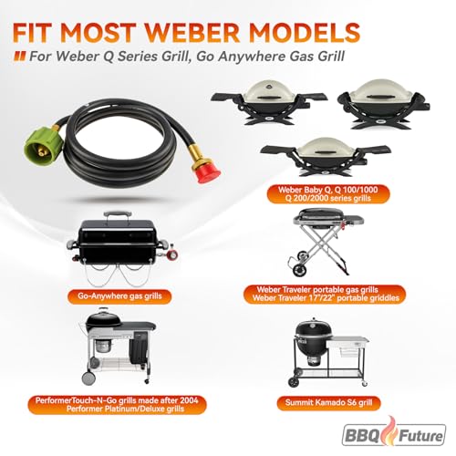 MixRBBQ Adapter Hose 6501 for Weber Baby Q, Weber Q 100, Weber Q 120, Q1200, Weber Q, Weber Q 200, Weber Q 220 Series and Gas Go-Anywhere Grills, 6-Feet, Black